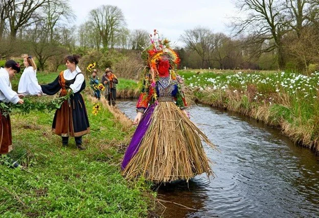 Drawning of a straw doll symbolising goddess Marzanna, known also as Marzana, Morana, Morena, Zmora or Death – in Slavic mythology (Slavic people lived in north-Eastern Europe) – personalisation of winter and eath but also rebirth and cycles of nature. Her name comes from old indo-european core mar- or mor- meaning death (like demon Mara in Buddhism) – in the context of her function in mythology is linked inextricably to the end of winter and beginning of spring.